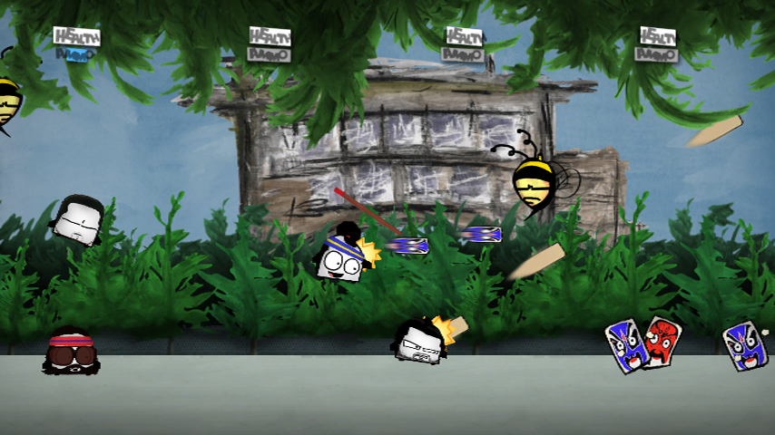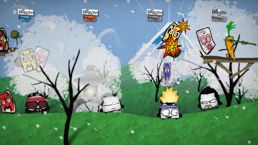 With visuals drawn and scanned in from several different art mediums such as pen & ink, acrylic paint and charcoal, Eduardo sports an untraditional aesthetic design for a videogame. Jump, shoot, whip, drive, fly and throw your way through hordes of Peking Opera pastries, spear toting carrots, robotic mangos, and more. Play with friends as you learn to cooperate effectively, or be annoying by throwing each other around the screen and attacking one another.