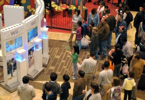 Holiday shoppers line up at the Stoneridge Mall in Pleasanton, Calif. on Black Friday, November 28, 2008, to take a break and try out the latest games for the popular Wii system from Nintendo. This holiday, Nintendo is bringing the Wii experience to the masses at more than 25 malls across the country to play popular games like Wii Fit, Wii Sports and Wii Music.