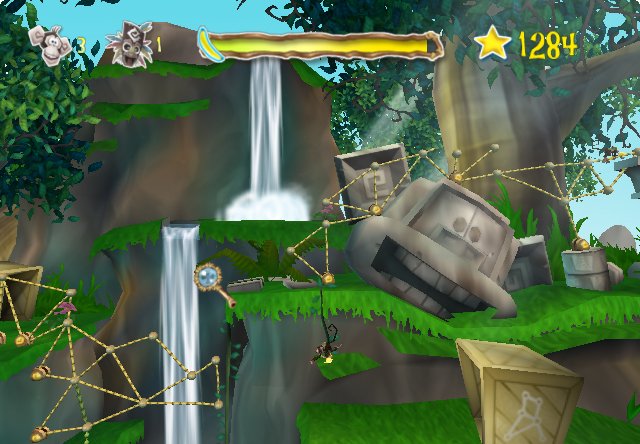 Tiki Towers is a game of construction, destruction, problem solving, and monkeys! You must reclaim the islands of your tribe by defeating series of evil enemy chiefs. Work with your monkey friends to build towers out of native materials such as bamboo poles, coconuts, and vines. Match wits against the enemy chiefs bent on destroying your towers and driving you from the island, navigate levels filled with crazy building challenges, and deal with unfriendly wildlife and other environmental obstacles. Assign monkeys to chant for the BananaMana necessary to cast spells that counter the attacks of the enemy chiefs. Play in either single player or two-player cooperative mode.