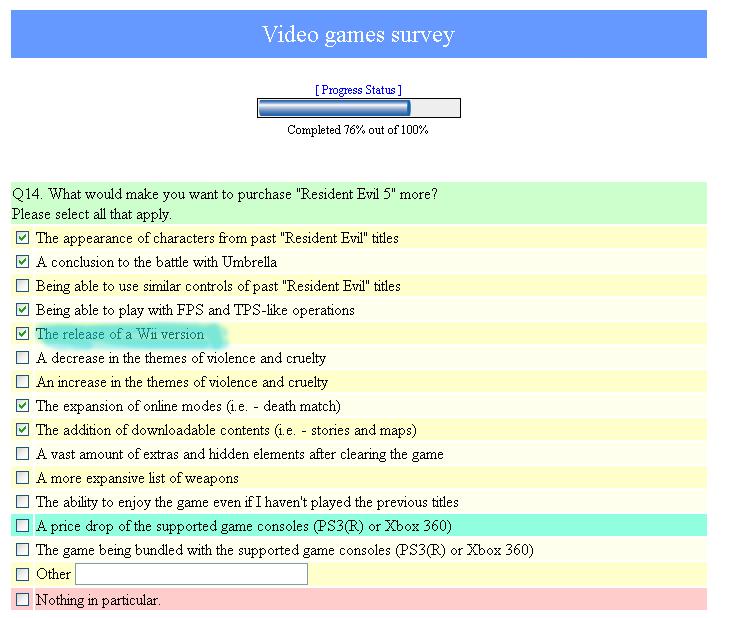 Capcom survey highlighted by Resident Evil 5 on Wii question