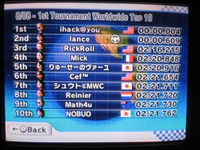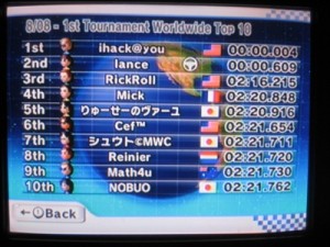 The newest Mario Kart Wii tournament went live a few days ago, but unfortunately, some participants took it upon themselves to hack their way to the top. Two racers have submitted ludicrous times – 0.004 and 0.609 seconds. Immediately upon looking at these results, one would quickly surmise that the results would not have been able to have been achieved through ethical means. Also, one of the hackers has gone so far as to dawn the name “ihack@you.” This is not the first time the Mario Kart Wii online system has been hacked. Previously, people began to exploit the Time Trials system to earn impossible times. Nintendo was able to root out and take care of cheaters, so it is expected that Nintendo will take similar action with this latest issue.