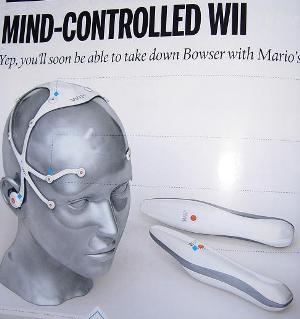 Strap the claw-like Wii head unit to your “dome” and it’ll beam your brain activity – translated into movement and other commands – to the Wii box and controllers.