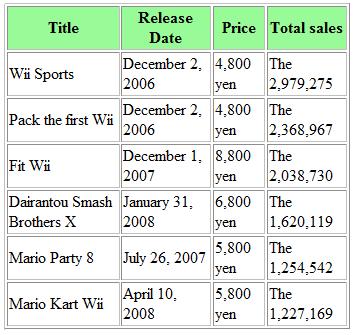 Top 6 selling Wii titles in Japan