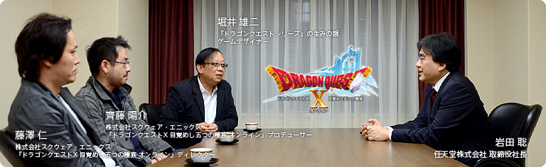 Director Jin Fujisawa, producer Yousuke Saito, Dragon Quest series creator/game designer Hori Yuuji, and Nintendo president Satoru Iwata participated in the discussion.