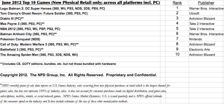 June 2012 NPD: Top 10 best-selling games in the U.S.