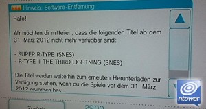 A couple of games will soon be removed from the Wii Shop Channel. Nintendo of Europe has announced that, starting on March 31, Super R-Type and R-Type III: The Third Lightning will no longer be available.