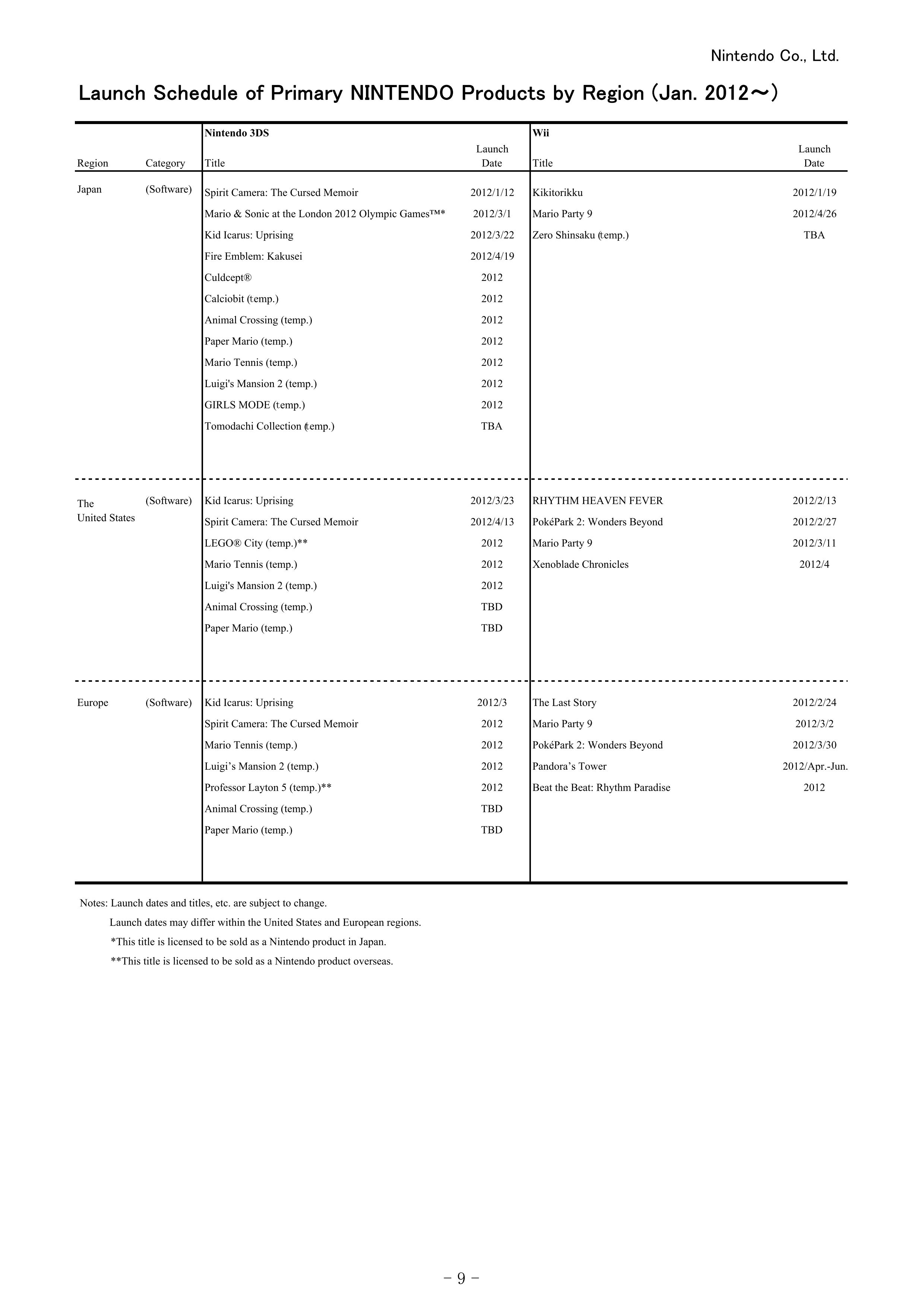 Nintendo release list – Spirit Camera confirmed for Europe, Culdcept/Calciobit in Japan for 2012, more