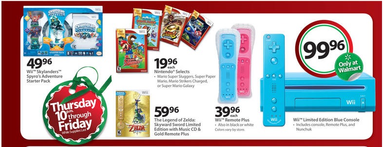 Consumers will be able to purchase a Limited Edition Blue Wii console in just a few weeks. Walmart will be offering the color variation, which comes with a $99 price tag, during Black Friday. A preview ad indicates that it’s a Walmart exclusive, so you won’t be able to find it at GameStop, Best Buy, or any other retailer.