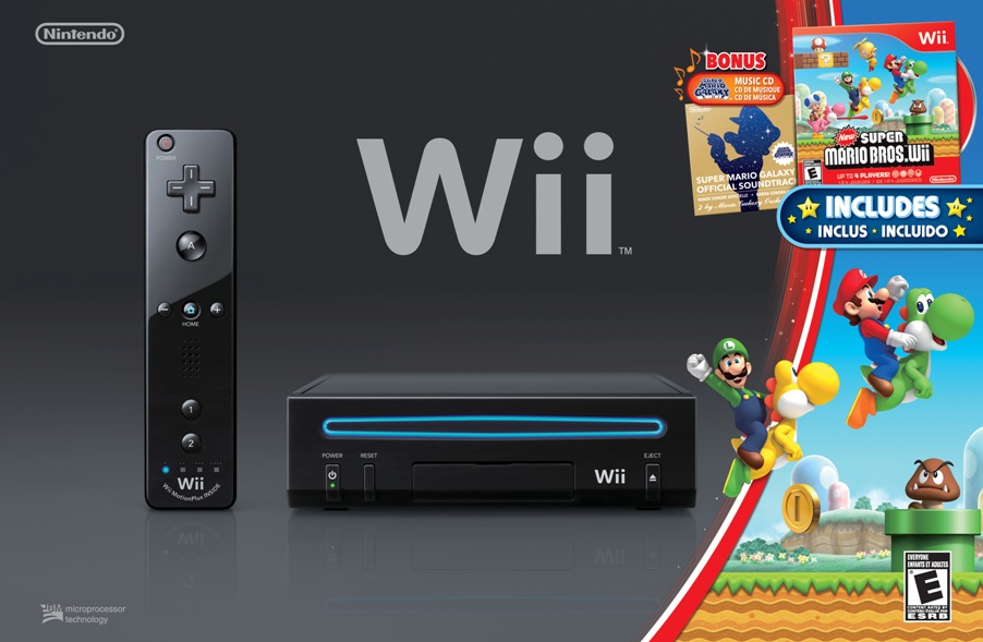 As the holiday season draws near, Nintendo of America is giving consumers a new way to discover the nonstop fun and exceptional value of the Wii™ system. Starting Oct. 23, a new Wii console bundle will be available at U.S. retailers, including the New Super Mario Bros.™ Wii game, a special Super Mario Galaxy™ soundtrack CD, a black Wii Remote™ Plus controller and a black Nunchuk™ controller. The new bundle will be offered at a suggested retail price of $149.99.