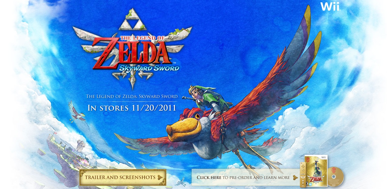 The North American website for The Legend of Zelda: Skyward Sword is open. It’s mostly in a teaser state at the moment, however. You can view a couple of trailers and screenshots, but that’s about it!