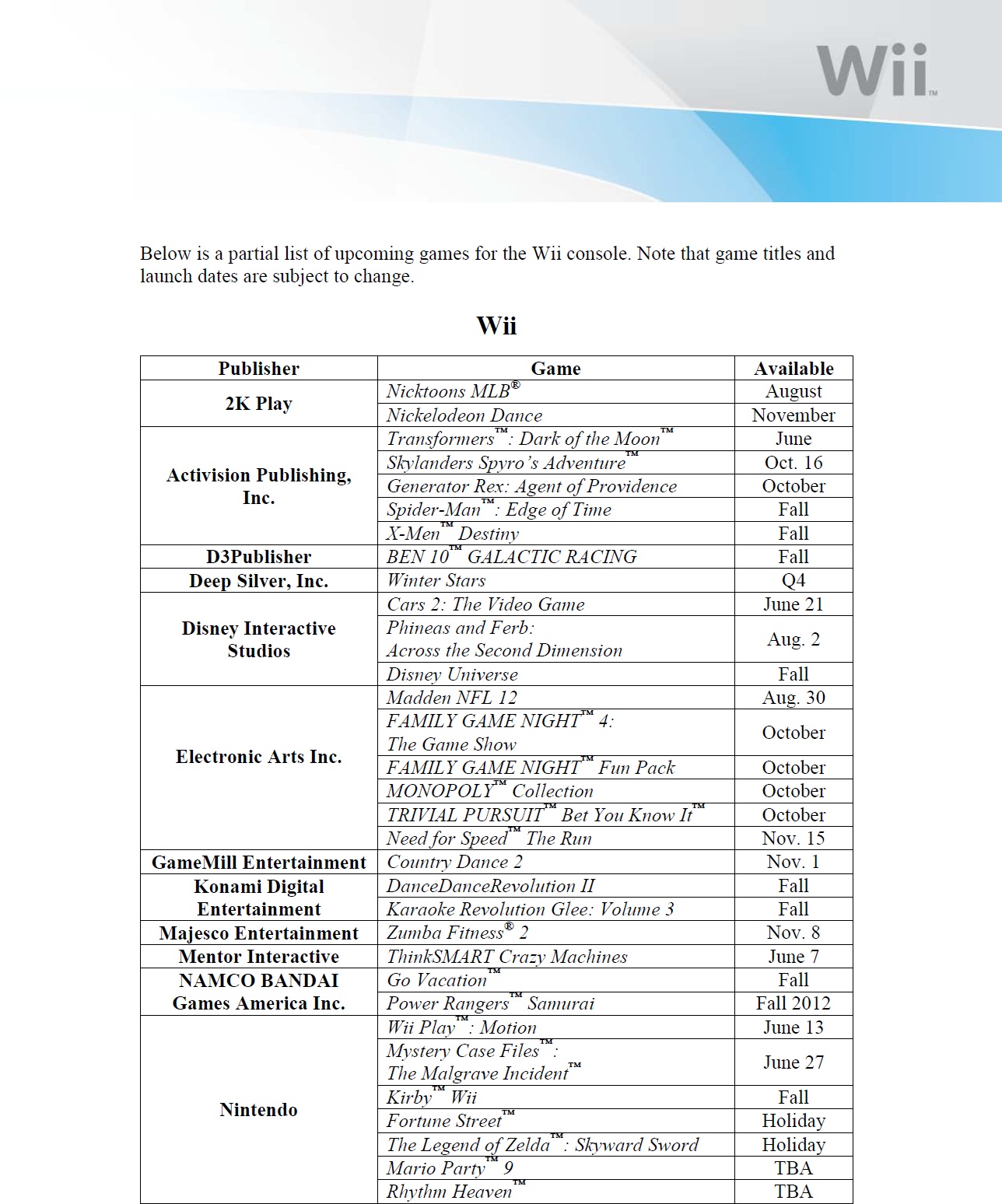 Posted on 14 years ago by Brian(@NE_Brian) in 3DS, News, Wii, Wii U | 0 comments