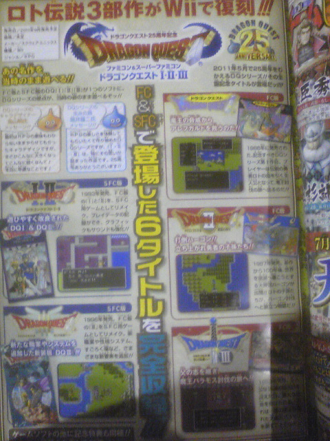 Square Enix will be bringing a Dragon Quest compilation to the Wii in honor of Dragon Quest’s 25th anniversary. Jump revealed the news in their latest issue (see the scan above). The first three titles in the series along with the Super Famicom remakes will be included on one disc, though it doesn’t look like there will be any enhancements. Dragon Quest 25th Anniversary Collection will arrive in Japan this September.