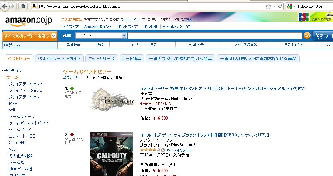 The image above was taken a few hours ago, but The Last Story is still number one on Amazon’s Japanese video game best-sellers chart. I have a feeling that this title will sell more than Xenoblade…
