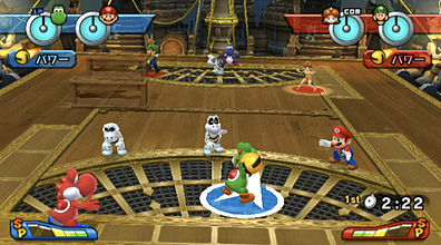 Waluigi Pinball: Pinball court operated by Waluigi Mecha, iron ball rolls around, compatible with volleyball/dodgeball/hockey