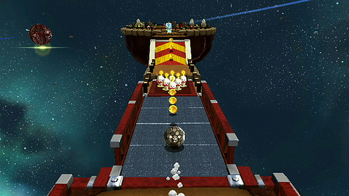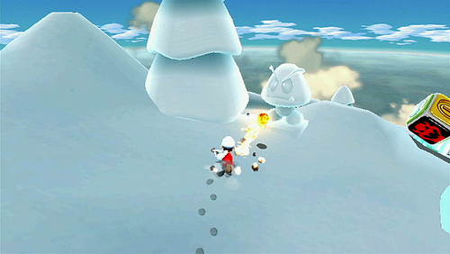 – Shake Wiimote to have Mario roll into a sphere, can knock down objects