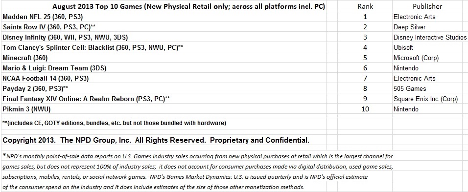 August 2013 NPD: Top 10 best-selling games in the U.S.