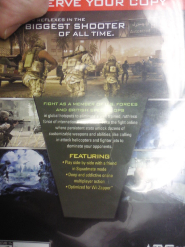 Even though Call of Duty: Modern Warfare: Reflex Edition (that’s a mouthful, isn’t it?) releases in just six days, only a handful of official screenshots have been released. No trailers, no videos, pretty much nothing in general. For now, gamers will be forced to make a purchasing decision based on a few previews written during GDC and pre-alpha screenshots. However, someone took a picture of the Reflex Edition box – particularly the back – which shows a few new screens. They are blurry, but this is what people have had to resort to in order to get a better idea about the game! You can check out the images below.