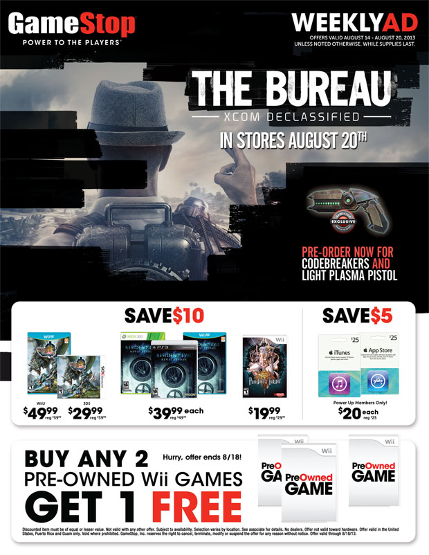 This week’s GameStop ad has gone live. Pandora’s Tower is available for $20 this week, and Monster Hunter 3 Ultimate maintains a $10 discount.