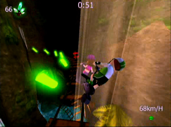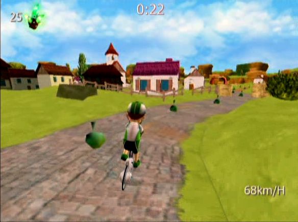 Discover the very first video game that comes with an exercise bike—have fun while pedalling! Cyberbike introduces a brand new way to do sports in your living room. The game invites you use your eco-citizen’s head and legs to clean up the planet. Clear paths and roads of the sources of pollution that are ruining the environment as you cycle along on some of the most improbable vehicles ever imagined—on land, sea and air. Using the bike included with the game, players are able to ride through 18 different circuits. As you progress, numerous accessories are unlocked to customise your vehicles and equipment, such as new backpacks and new vehicle colours.