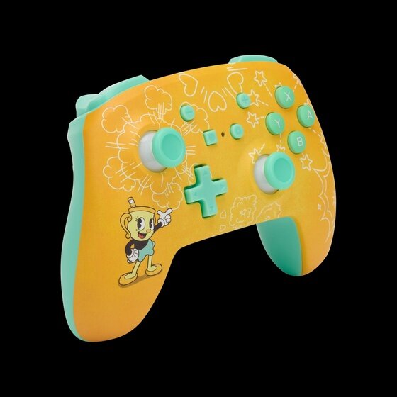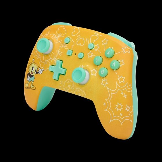 PowerA notes that the new design “radiates all the animated, eccentric energy of the franchise.” It features bright yellow hues and mint green accents. Also, the front faceplate is polished off with detailed, cartoon artwork from the game starring Ms. Chalice.