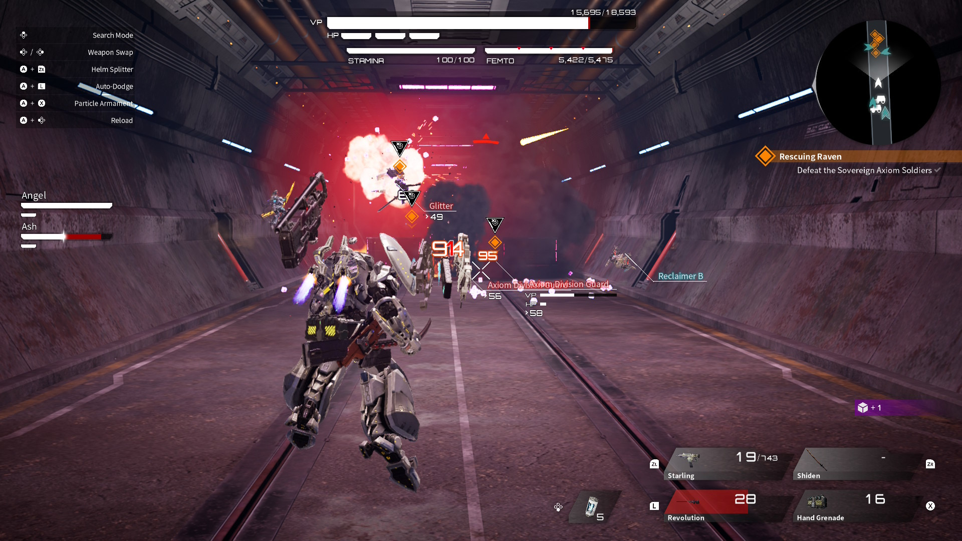 Titanic Scion takes place many years after the events of the first game, and tells a self-contained story that is loosely connected to the events that came before. It’s a fairly lore-heavy title, and a lot of backstory is thrown out very quickly, but at its core this is a story about warring factions. After a series of wars took place fueled by a powerful energy source called Femto, many humans were born with mutations and/or special abilities as a result of exposure to that dangerous substance, and were designated as non-human “Outers.” The Outers won a war against the humans and established a military regime called the Soverign Axiom, which is currently in the business of trying to eradicate humans altogether. The humans who survived and decided to fight back against the Sovereign Axiom are a group of rebels called the Reclaimers, and that’s essentially the power dynamic that Titanic Scion spends most of its runtime exploring.