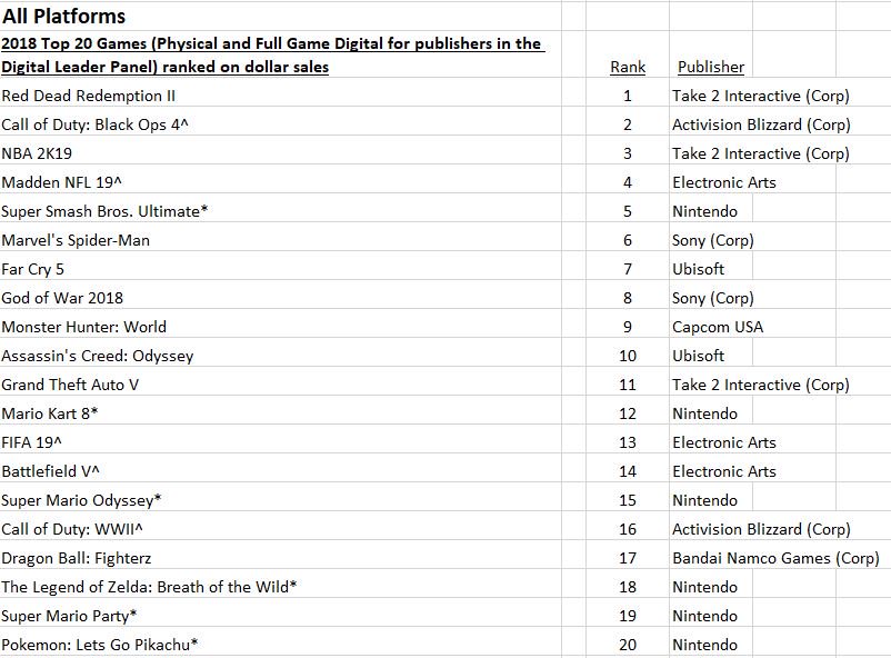 Top 10 best-selling games of 2018