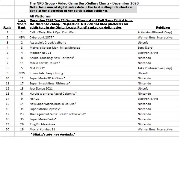 December 2020 NPD: top 20 best-selling games in the U.S.