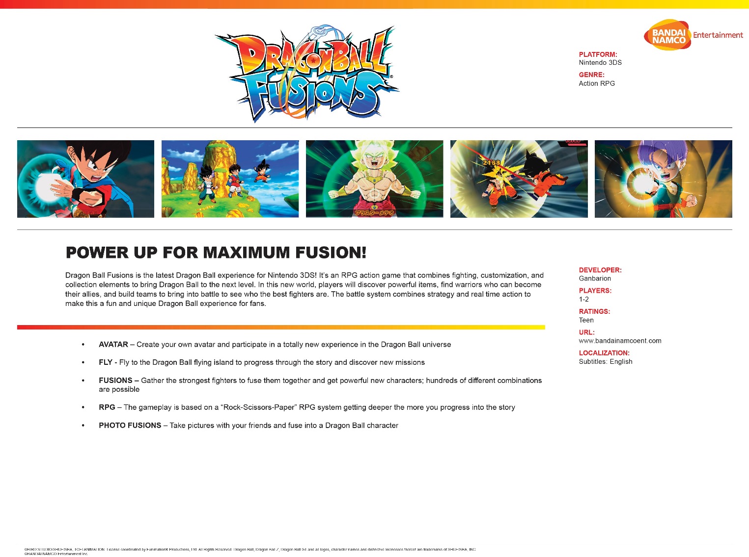 Dragon Ball Fusions fact sheet