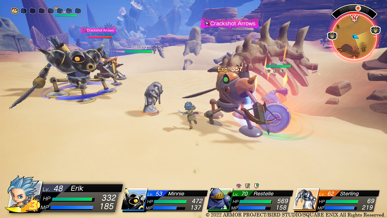 In Dragon Quest Treasures, Erik and Mia hunt for loot on the floating islands of Draconia, where monsters roam free. Some of these are hostile and need no excuse to attack Erik and Mia. Fortunately, the siblings have a team of trusty monster allies, and together they can fight off would-be attackers!