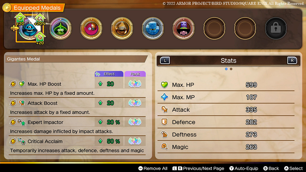 Raise your gang’s rank to equip more medals. Each medal provides a different effect, and can come in one of four ranks: bronze, silver, gold or rainbow.