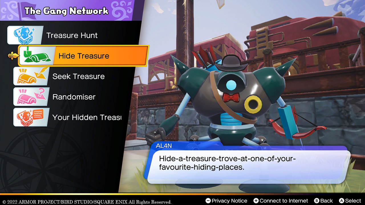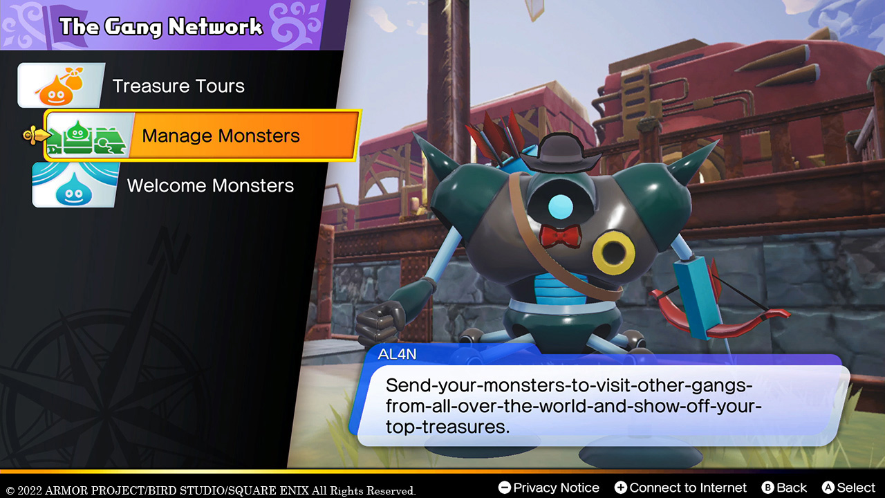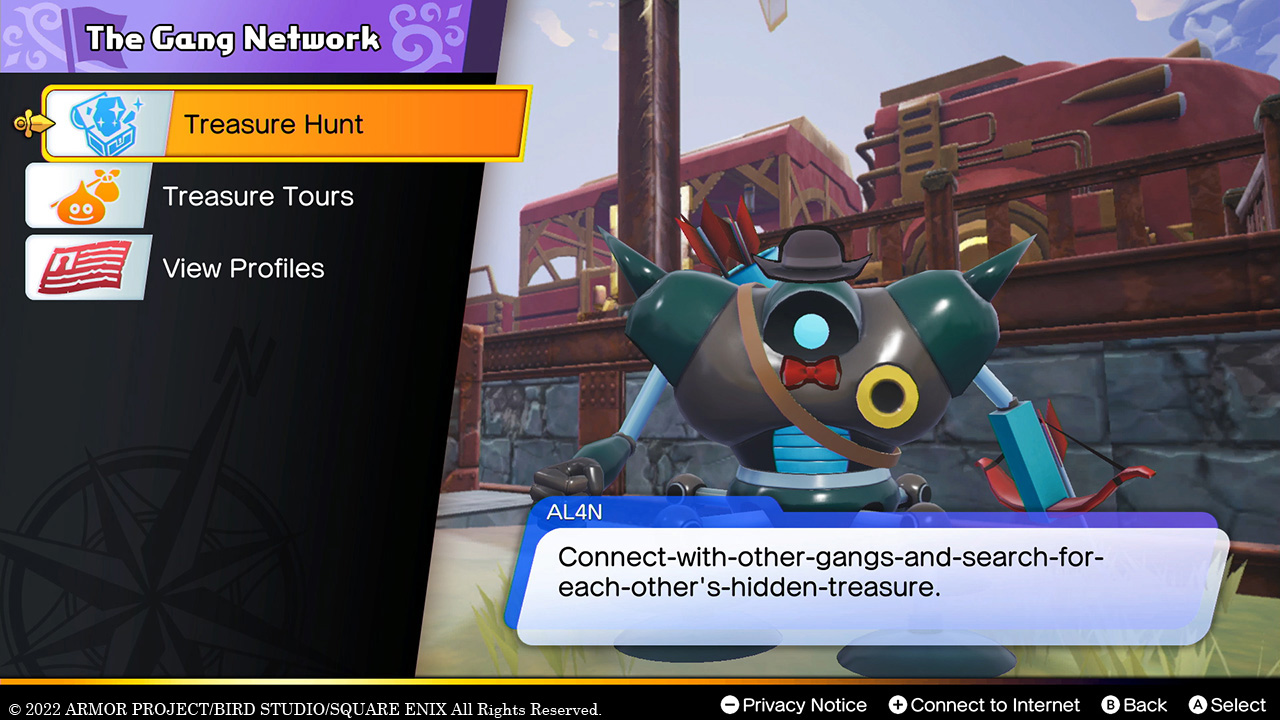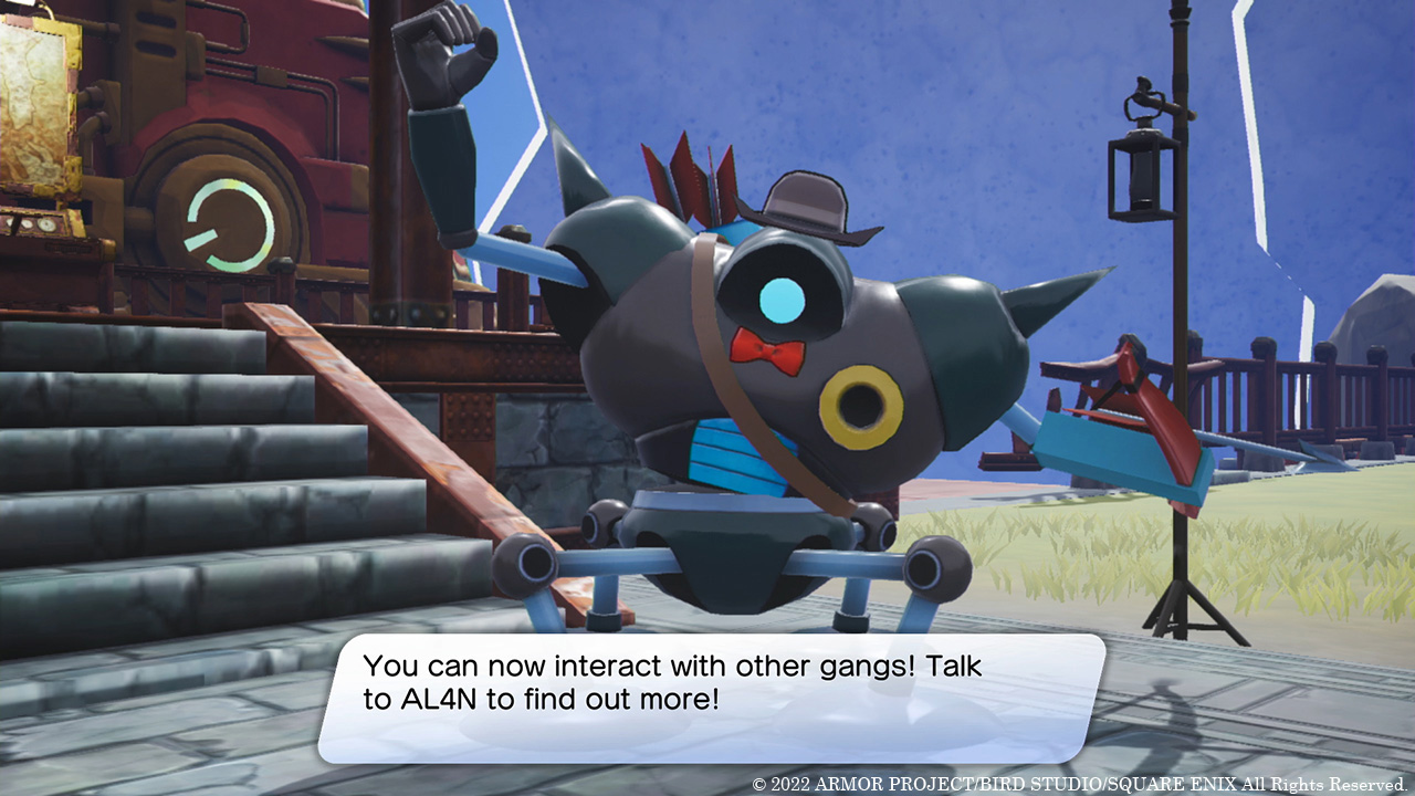 Once Erik and Mia’s gang has grown sufficiently large, a mechanical diplomat known as AL4N will come and stay at their base. He grants access to the Gang Network, a hub for online features that players can use to interact with other gangs. Once you’ve connected to the internet, you’ll be able to hide treasure in Draconia, search for loot hidden by others, send your monsters out to show off your best treasures to other gangs, and likewise receive their monsters as guests.