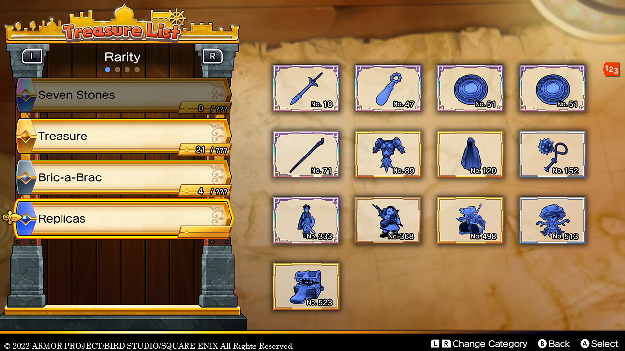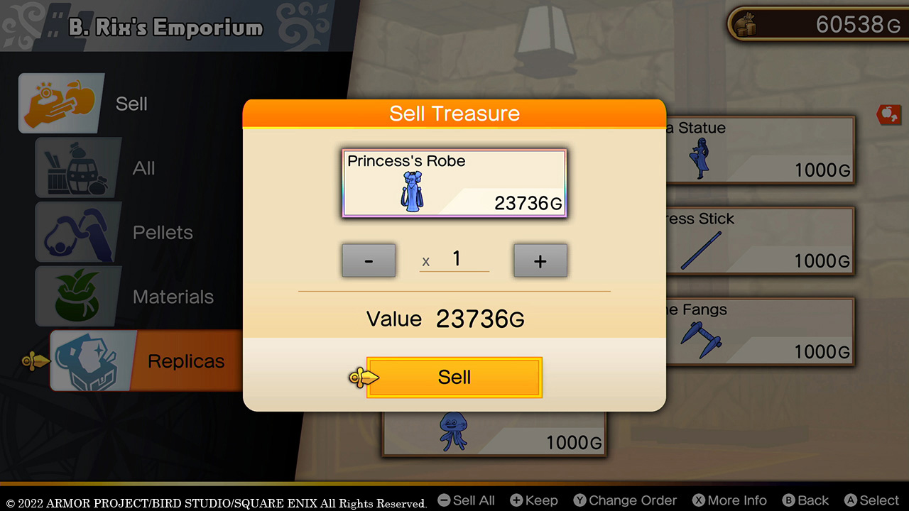 Replicas don’t add to the value of your treasure vault, but they can be sold for money. Rare replica treasures command a high price!