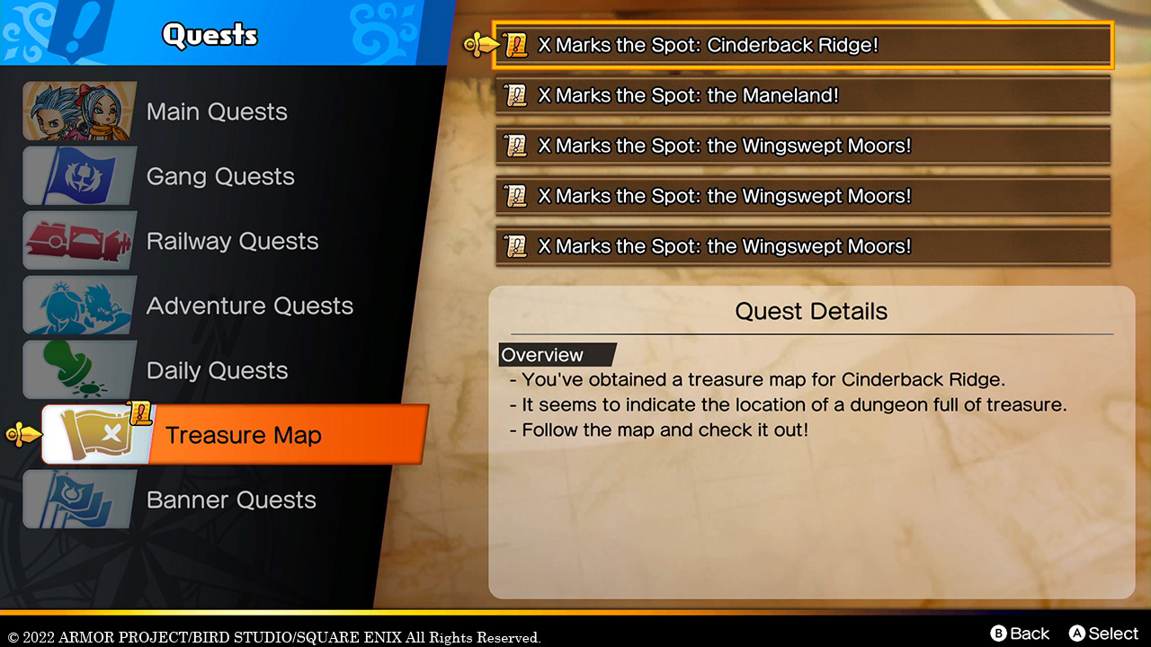 Take a closer look at the treasure maps and dungeons in Dragon Quest Treasures below.