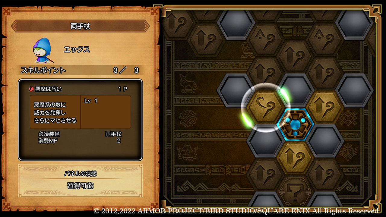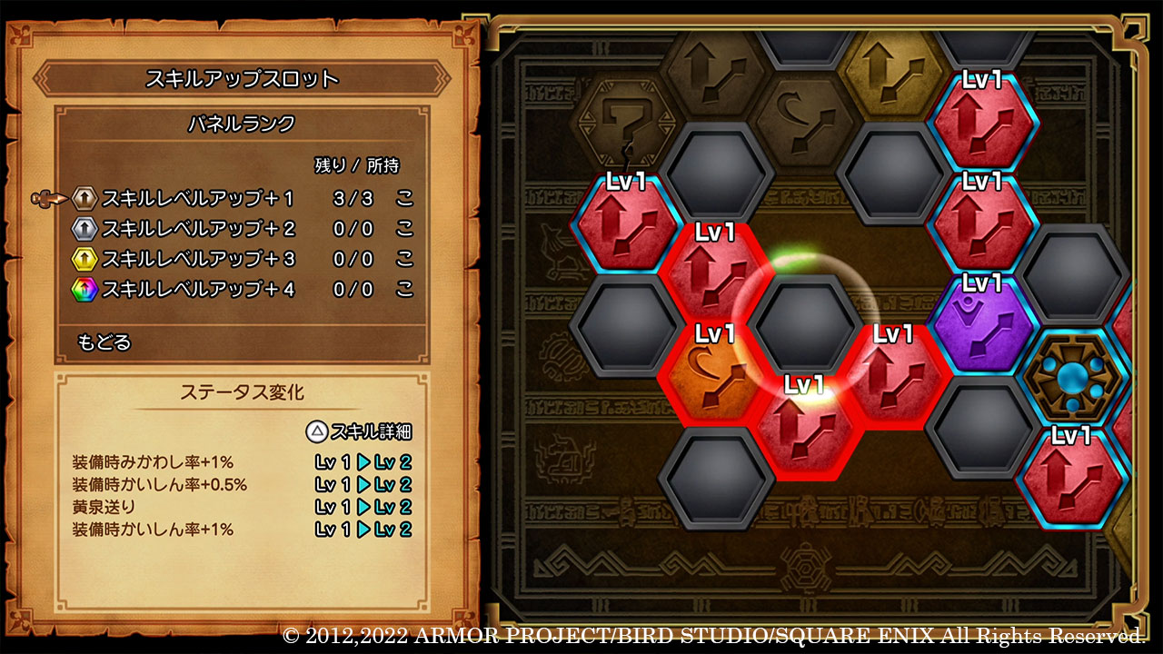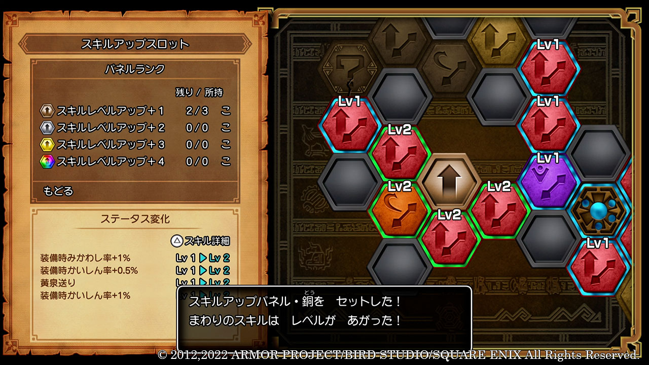 – The game lets you level up skills and spells by inserting a special “Skill-Up Panel” in an empty slot surrounding the abilities and spells you wish to enhance