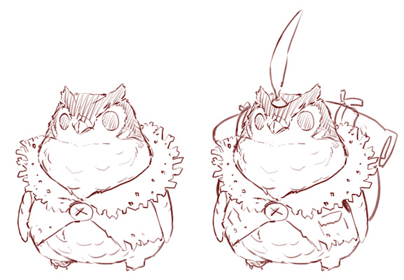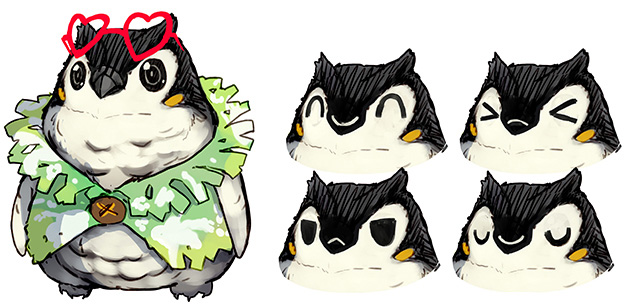 His design is a mix of a penguin and owl. The reason why the design is such a mixture is because of Ishii’s intuition. Each time he thinks about a mascot character, it always ends up looking like that. When he told Shizuma to design that, he was given a rough sketch so perfect for him, so he instantly approved it.