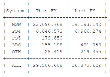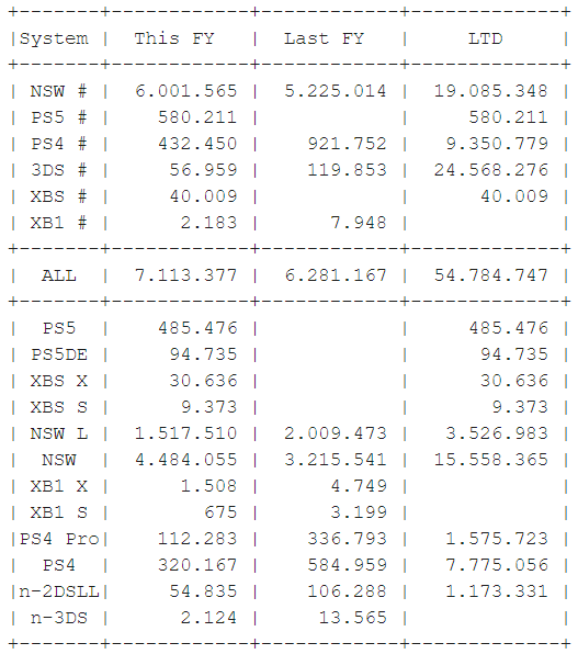 Finally, here’s the total for Switch hardware sales in fiscal year 2020, which reached over 6 million (800,000 more than last year).