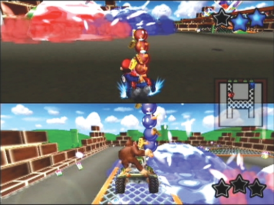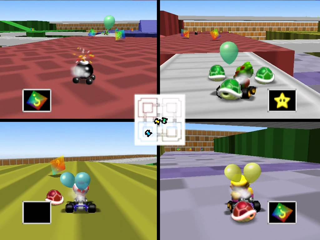 As the series made its debut in 3D, Mario Kart 64‘s Battle Mode formula had to change to account for that. The differing terrains were a big change from the original and that would have implications on visibility, one of Super Mario Kart‘s biggest strengths. Additionally, the bump to four players created a new issue – what do you do with players that bow out of the competition early? The former had an easy fix: keep arenas small and chuck in a mini-map to help players find each other (because of course, nobody ever screen cheated). If you were one of the unfortunate players to get eliminated prior to the round’s end, you were transformed into a bomb kart and were free to wreak havoc and blow up players still in the running by colliding with them. Regarded by many as the best Battle Mode entry, it’s clear that a great deal of care was taken to bring the mode over to true 3D, ensuring the formula stayed strong. Also, Block Fort rules.