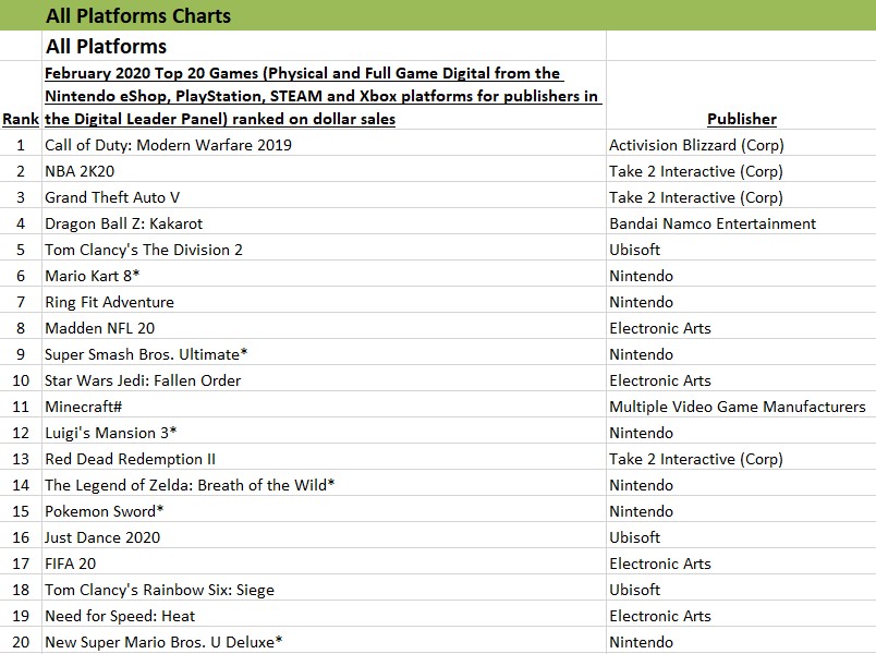 February 2020 NPD: top 20 best-selling games in the U.S.