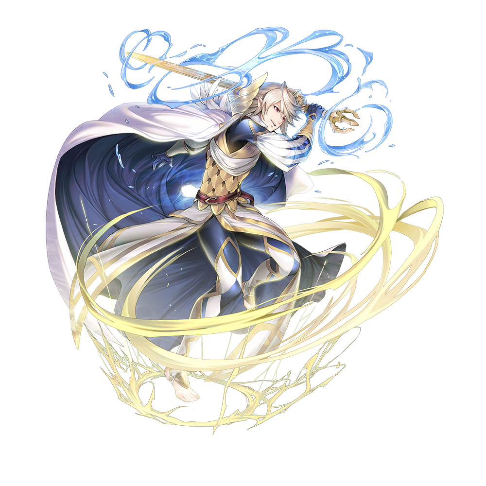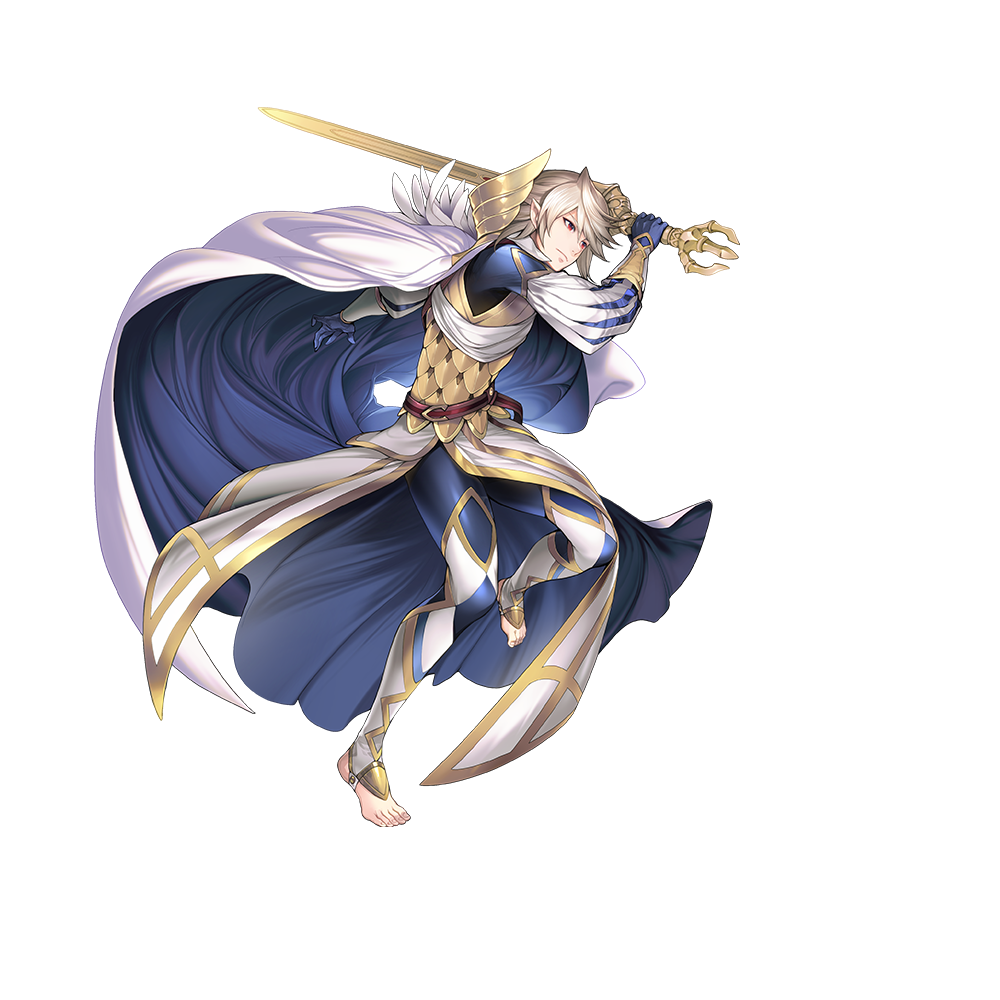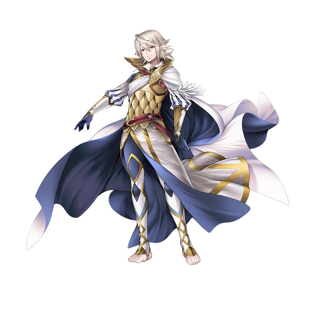 Corrin’s a member of Hoshido’s royal family, but for this appearance, he’s wearing Askran attire similar to what Alfonse and I wear! With that winged armor at his neck and the proud emblem on his chest, he really does look like he could be our long-lost brother. Of course, it wouldn’t be Corrin if he wasn’t going around barefoot!