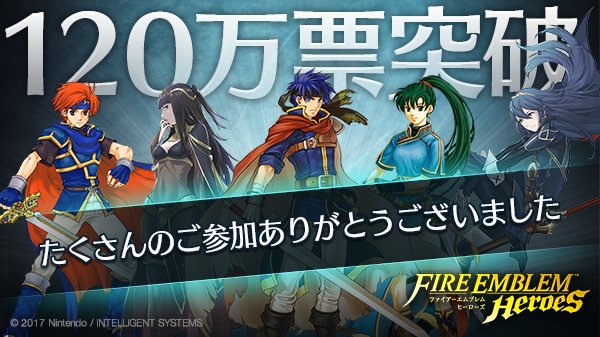 The Fire Emblem Heroes “Choose your Legends” vote has come to a close. When the poll was open, Nintendo says that 1.2 million votes were recorded. We should be finding out about how things went shortly.