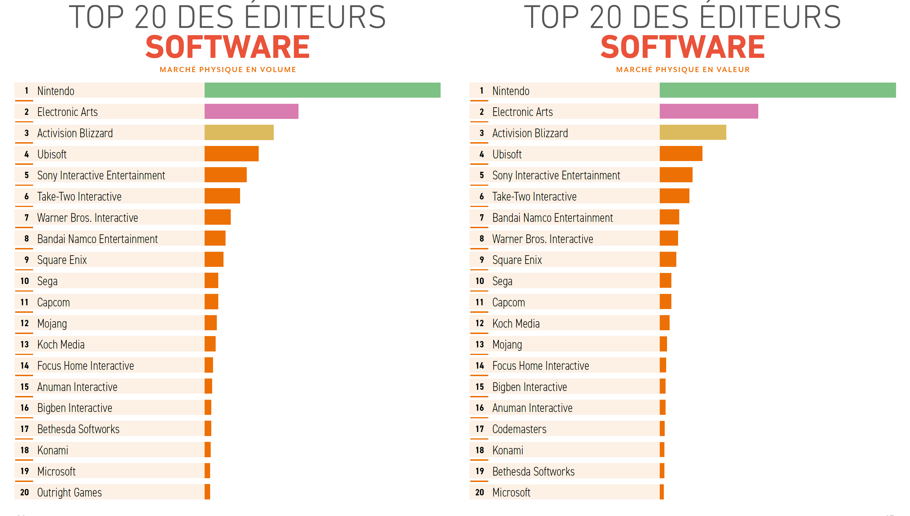 We also have a look at how publishers did last year – with Nintendo making up a huge portion of the market. The graphic below highlights the amount of games on the left, with value taking up the chart on the right.