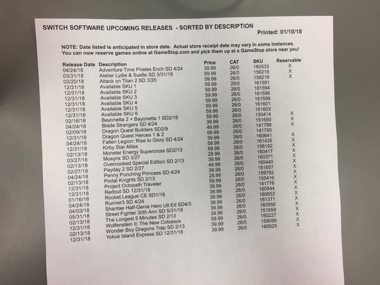 GameStop’s internal system adds six new SKUs for unknown Switch games