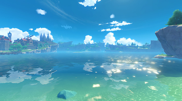 A natural freshwater lake. The lake’s wide, crystalline appearance has remained unchanged for eons—so clear you can see the bottom, and cool and refreshing to drink. It is none other than these headwaters that brought Mondstadt’s ciders and wines to fame and made the lake the symbol of Mondstadt that it is today.