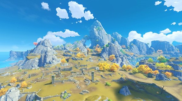 In the southeast corner of Mondstadt’s surrounds lies a cape that borders with Galesong Hill. Legend has it two lovers made an oath to each other here and left behind a deeply touching story. To this day the area is still known to be popular amongst young lovebirds. Other than being a great vantage point for watching sunrises and sunsets, the drop in terrain makes it easy to see Windrise, which sits facing the sea.