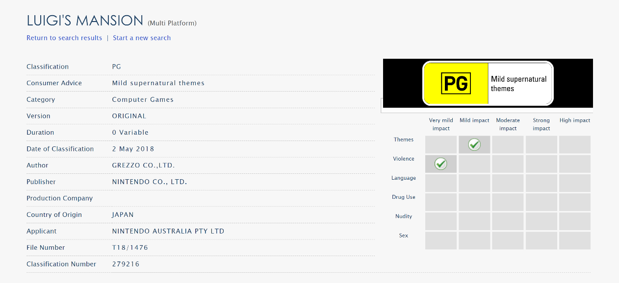 Grezzo is developing the 3DS remake of Luigi’s Mansion, according to a new classification from Australia.