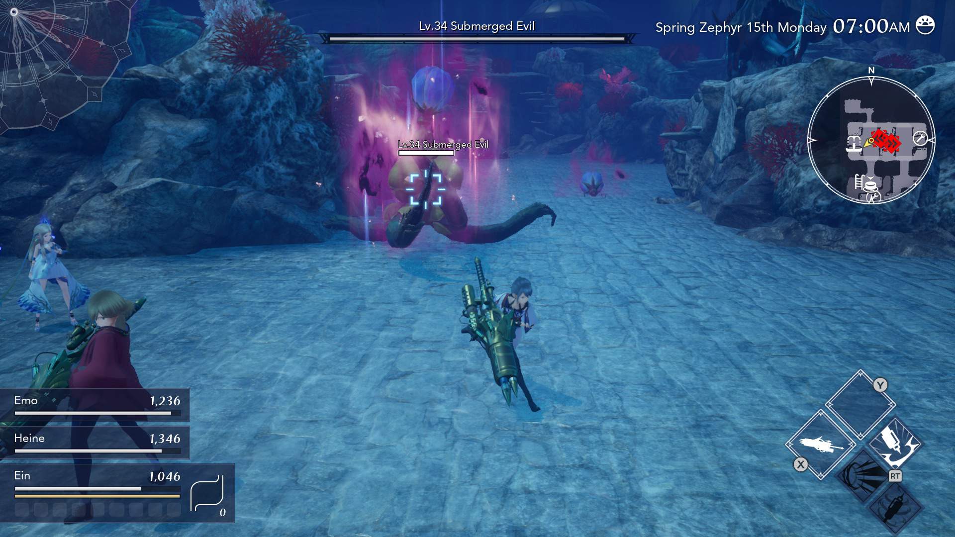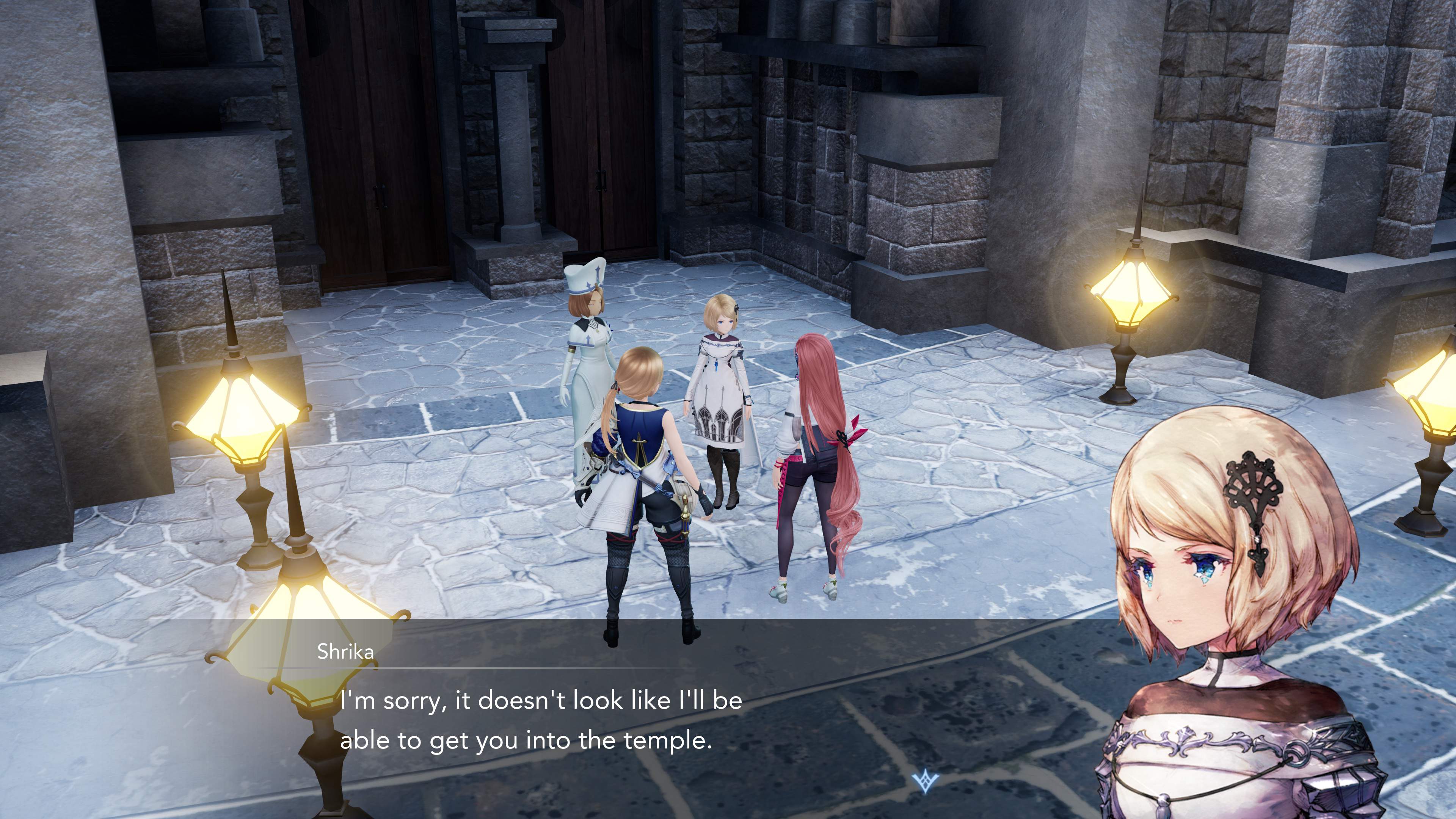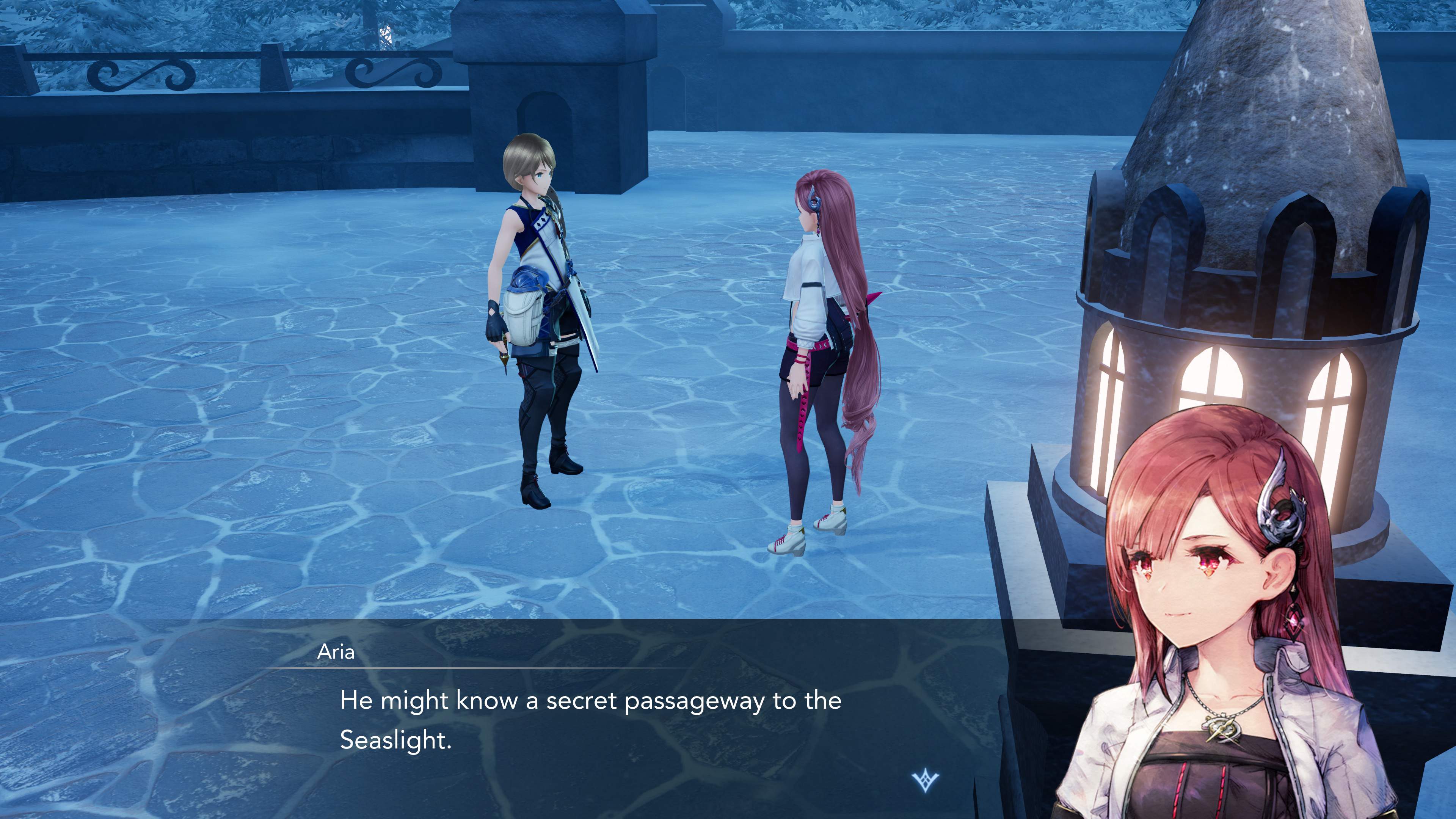 You and Aria visit the Holy City Argene to investigate the Winter Seaslight but are told that only those who have been given the the flower “Flos-Indulgentia” are allowed entry into the Divine Cave.