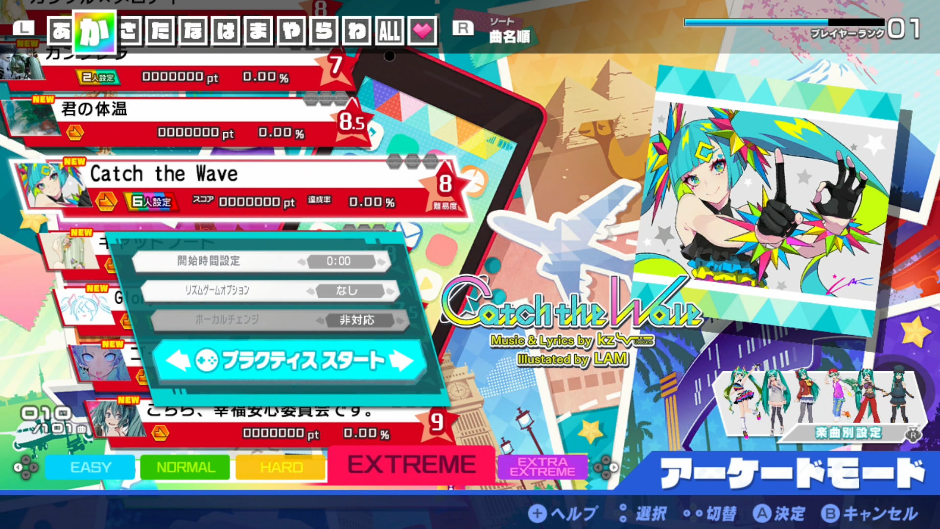 – By selecting “Practice Start” in the song selector, you can play any part from the rhythm game repeatedly