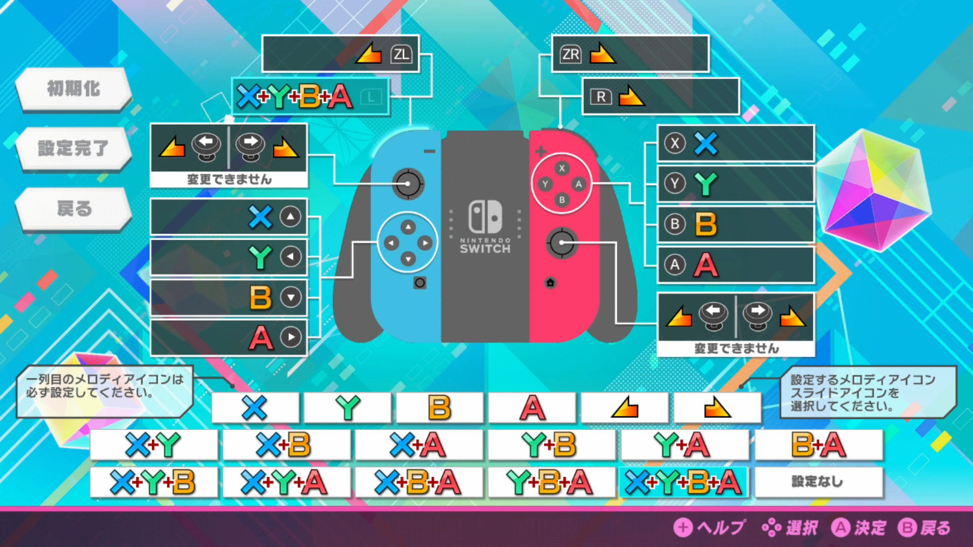 – Simultaneous pressing (two, three, or four presses) of the melody icon can be set to one button each (for example, pressing ZL can be set to be equivalent to pressing all four arrow buttons)