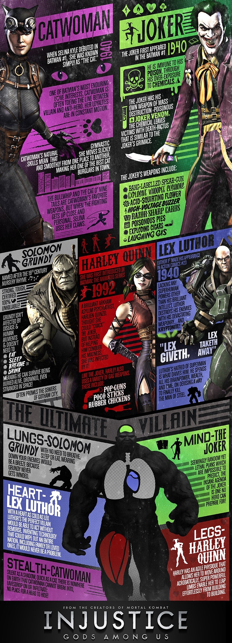 Injustice: Gods Among Us is just a few days away from launch. You can get a lowdown on the game’s character roster through the infographics below.