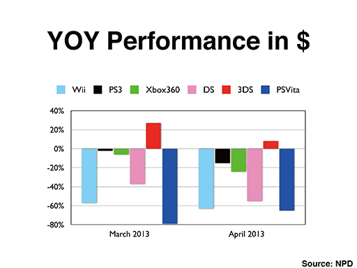 This chart is based on NPD data and gives year-on-year U.S. sales comparisons for March and April by platform.